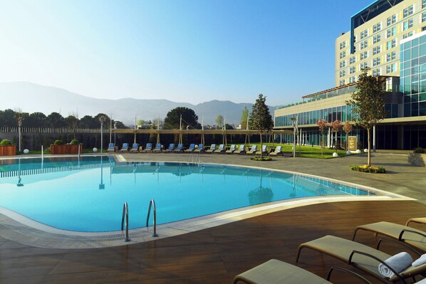 The Sheraton Bursa Hotel in Nilüfer blends eco-consciousness with comfort. Guests can shop on-site, enjoy coffee at the café, and relax in the indoor or seasonal outdoor pool. Two restaurants offer authentic Turkish dishes, and the staff is consistently praised for their service.