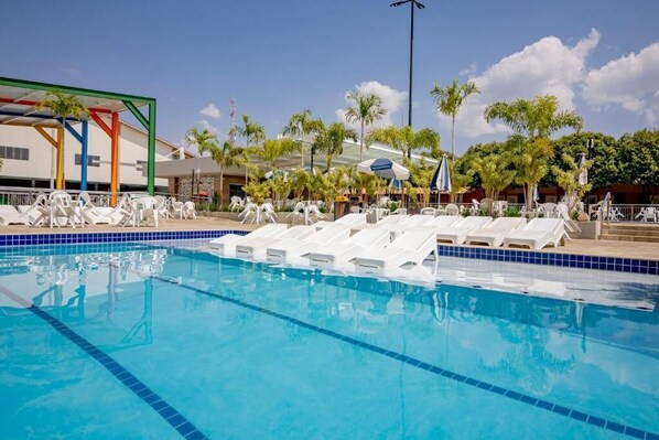 Yes, this property has 4 outdoor pools and a children's pool. Pool access is available 24 hours a day.