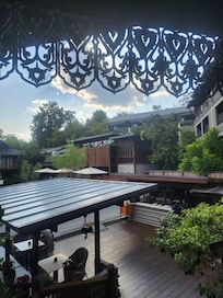Excellent service (reception, cleaning, exercise programs, etc.), facilities, very clean room and towels, typical Thai architecture, quiet environment for retreat. Grab taxi (standard car) to the night bazaar costs in average 200 THB, absolutely affordable