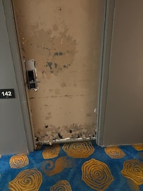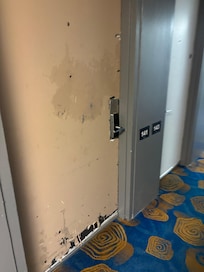 Check in was at 4pm, I arrived before 9:30pm and my room was not ready…The lobby is decent but once you start down the hall it’s a war zone. Floor is dirty, doors are beat up, the room itself didn’t have a chair, had one lamp to light the whole room, stains and cigarette burns on the top blanket, sheets are thin and dirty, the floor is scratched up, the paint is peeling off in every surface, the bathroom door was beat and scratched, the toilet was recently used and not clean and shower had pee on the edge.