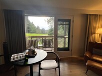 The property in general has lodge vibes and is rustic.. for that, we really liked it. The Adirondack chairs, forests, fire pits, daily blown glass scavenger hunt were fun. The pool area and hot tub area on the main lodge site weren’t very appealing and we felt could use sprucing up. The customer facing folks were very warm and friendly. Main challenges we experienced were getting anyone on the property on the phone to give clear answers- we were hoping to book Spa treatments ahead of arriving but the reservations desk don’t talk to the spa or know the schedule(which is part of the property) and it involved many calls back and forth- there is no way to book or see appointments available online (this would be a huge improvement and I hope they will consider that in the near future). We did call someone at the spa once we checked in and were able to book a massage and get a “maybe” on a day pass.. the next day when we went in as we walked by, it seemed like it wasn’t any problem at all to accommodate the appointment and pass so we’re not clear on why it felt so hard to get this accomplished, especially as guests staying in the property for several days. The spa area itself was gorgeous and we enjoyed our time there. The food onsite that we tried- breakfast type things weren’t great- but the coffee served at the provisions was great- that coffee shop and a couple other little food places just across the road (by the spa) were very good. We could see visiting again in the future.