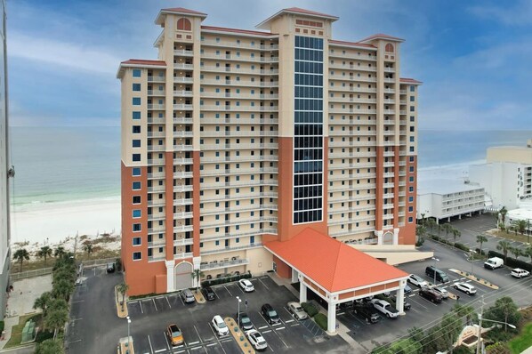 On beach with outdoor pool for sandy fun near Gulf State Park