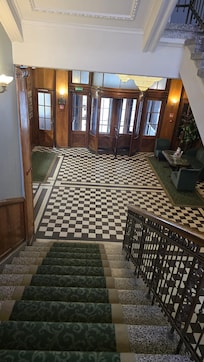 Впечатление очень среднее. Конечно, расположение хорошее, но сам отель требует нормального современного ремонта. Потрескавшийся потолок, затекшие стена, расцарапанный пол. Кровать удобная и постель чистая, чисто в комнате, но персонал не может своим честным отношением к работе скрыть обшарпанные двери, разбитый кафель, шумный унитаз, отсутствие шумовой защиты. Хлопающие крышки унитаза, неудобная подставка для моющих средств, невозможность регулировать температуру в комнате (мне, например, было жарко спать). Остатки былой роскоши в виде широких коридоров, массивных деревянных дверей делают более заметными отсутствие современных удобств - лифта, кондиционера, электронных замков. В номере нет ни чайника, ни хотя бы бутылки воды, только пустой холодильник для своих покупок. Завтрак неплохой, кофе вкусный, но очень скромный выбор. В следующий раз точно не остановлюсь, извините.