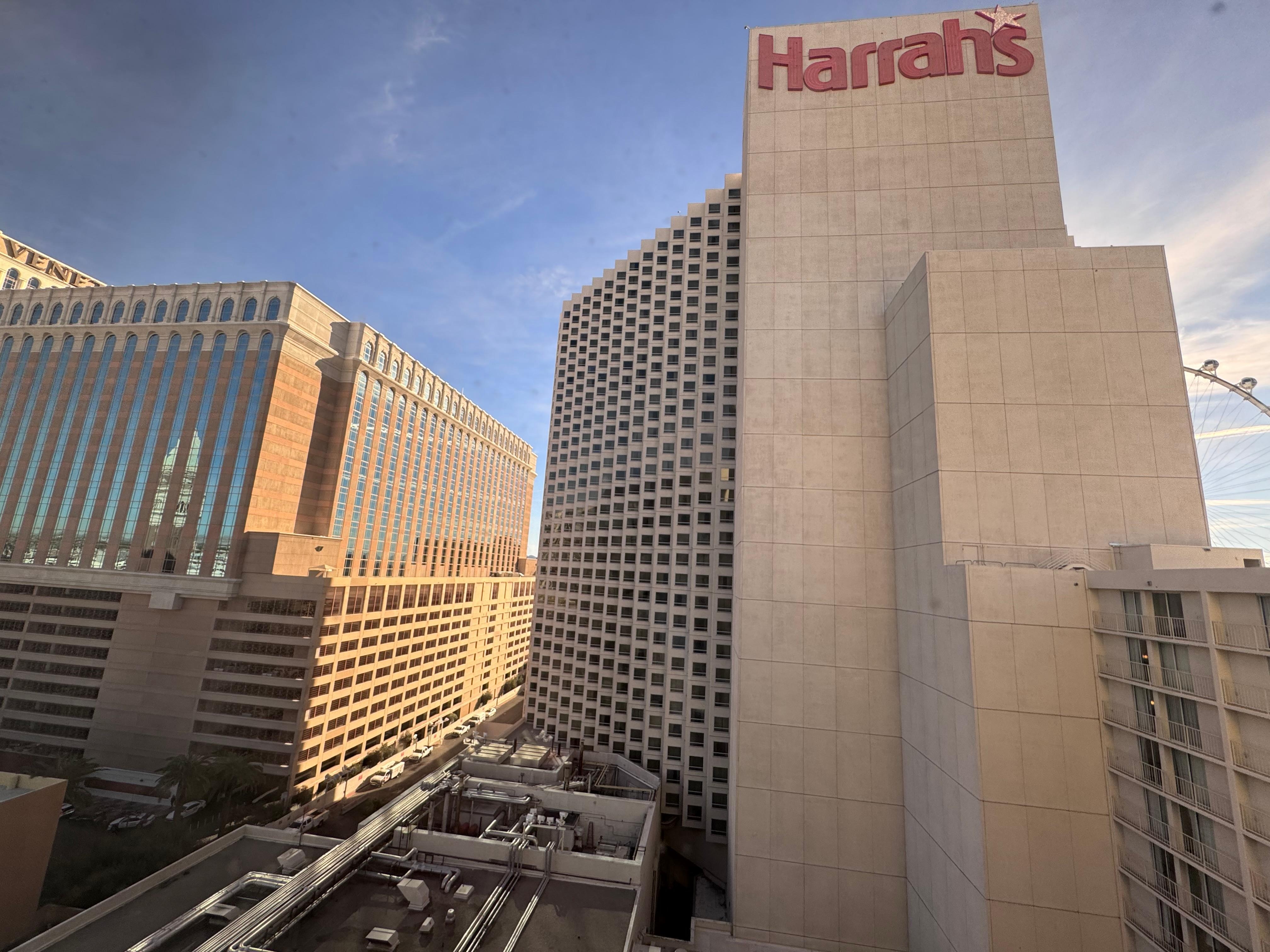 The room only had two bath towels to start with, we had to ask for clean towels and after that we didn't get any towels the next day either. Housekeeping needs to up their game. Our "Mountainview Tower" room was fine, the view was a bit of a joke, a slot view between buildings, I didn't really care about that, someone might.. Harrah's is right in the middle of the Strip, a good location for going to the Sphere, which is why I picked it.