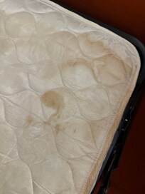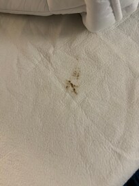 We were then reassigned to a room with a king bed and a pull-out couch, which was not ideal. Unfortunately, the pull-out couch had dirty bedding, and the mattress was badly stained. Once again, we had to return to the front desk to request a clean mattress cover and blanket. This was exasperating after a 14 hour day driving
