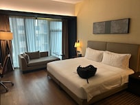 The king studio room was well equipped with high ceilings, abundant space, and spectacular views. I enjoyed the breakfast bar with plenty of asian, western and healthy options. Explored the rooftop bar for even more nighttime views. Pool was on a noisy level but I liked the clear bottom feature, it was a standout. The front desk was very attentive and I even enjoyed a complimentary 2pm check-out. Would recommend if you're consider I'm Hotel!