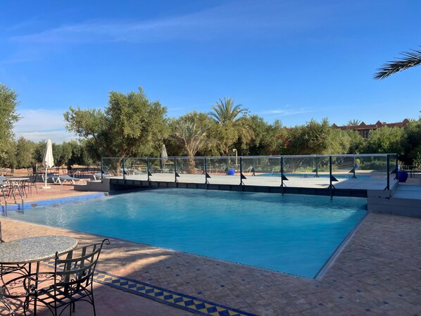 Travelers savor authentic local flavors each morning before choosing between two refreshing pools at this welcoming retreat near Marrakech's famous square
