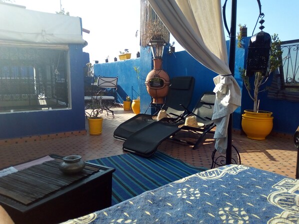 Travelers at Riad Zinnha enjoy authentic Marrakech charm with a rooftop terrace offering city views. The riad features a quiet library, an on-site restaurant serving meals all day, and a refreshing outdoor pool for cooling off.