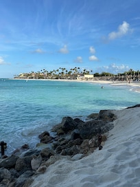 Convenient location RIGHT on the beach!! Beautiful views…love the accessibility of trolleys going back and forth to the Divi All Inclusive!!! We had SUCH an AMAZING vacation!!! And can’t wait to come back!! The excursions were awesome and easy to set up with the friendly staff to book them And dinner reservations !! …just all around a GREAT PLACE…and Magical time❤️ perfect weather everyday and love that we started and ended every day on our balcony!!!