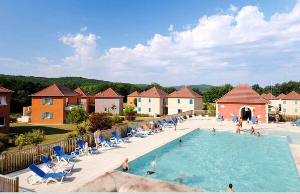 A children's pool and a seasonal outdoor pool are on site.