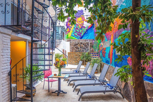 Absolutely perfect couldn’t ask for more ! Rooms are so cute, clean, and staff are friendly. Good ac. 5 minute walk to the beach, it is in a steep hill but there is a tramway working all day for you to use for free. There is an Oxxo and pharmacy up the hill. Walking distance from several restaurants will definitely be staying here again !