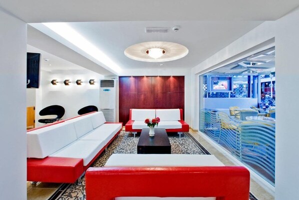 The room is quite small. The bathroom floor is permanently wet from the shower. Our room overlooked the street which was a bit noisy due to nearby bars and restaurants and the massive building site which was the Mitsis Grand Hotel.