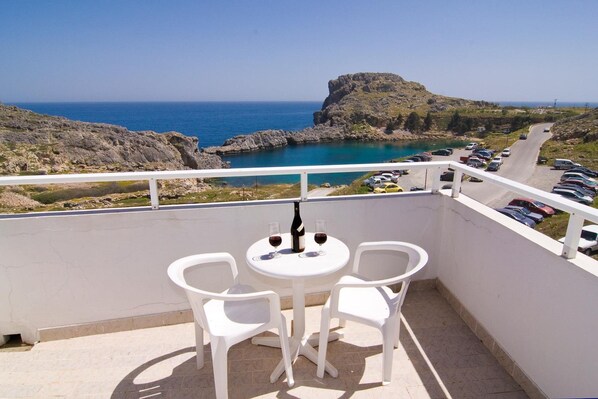 Travelers wake up by the sea at St. Paul's Bay View Suites, where days unfold on the sun-drenched beach or exploring the charming nearby town of Lindos.