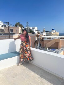This villa was the perfect accommodation for our group of 5. It was in the perfect location near the main street that was easy to get to but still felt secluded enough. The villa is spacious and had everything we needed for our stay. 1 Bedroom and full bath on the first floor was convenient for my husband who unexpectedly got injured before our trip. The other two bedrooms are on the 2nd floor with a full bath on that level too. Everything in the pictures is exactly as it looks, even bigger! Stavroula and Nico helped us get settled in the villa and Stavroula gave great recommendations for restaurants nearby and she set up all our excursions so we didn’t have to worry about anything. The view of the villa faces the west side of the island so it’s great for sunrise. If you want to see a sunset you’ll have to walk to the Caldera side which is less than 10 minute walk. We had such a great time during our stay and cannot wait to come back again.