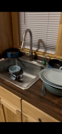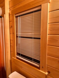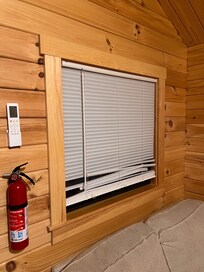 Upon arrival, I immediately noticed that the blinds at the front of the tiny home were damaged and would not close properly, compromising privacy. I had to improvise a way to cover the window to prevent visibility from outside. Additionally, the refrigerator was not clean upon arrival.