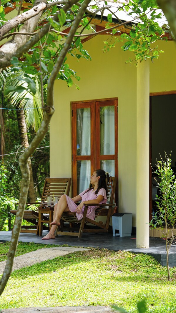 Die Bungalows sind einfach, aber völlig ausreichend und fügen sich perfekt in die Natur ein. Es gibt bequeme Betten, ein eigenes Bad mit Warmwasserdusche und die Möglichkeit, mitten im Grünen zur Ruhe zu kommen.