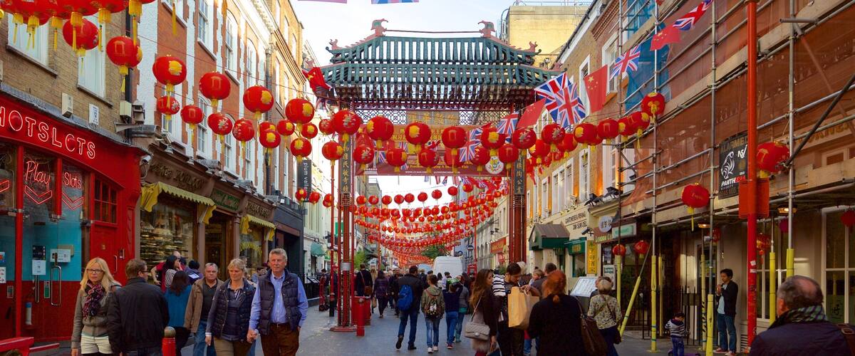 Authentic Asian cuisine, quaint teahouses, lively bars and animated festivities of the Chinese New Year await in this district in central London.