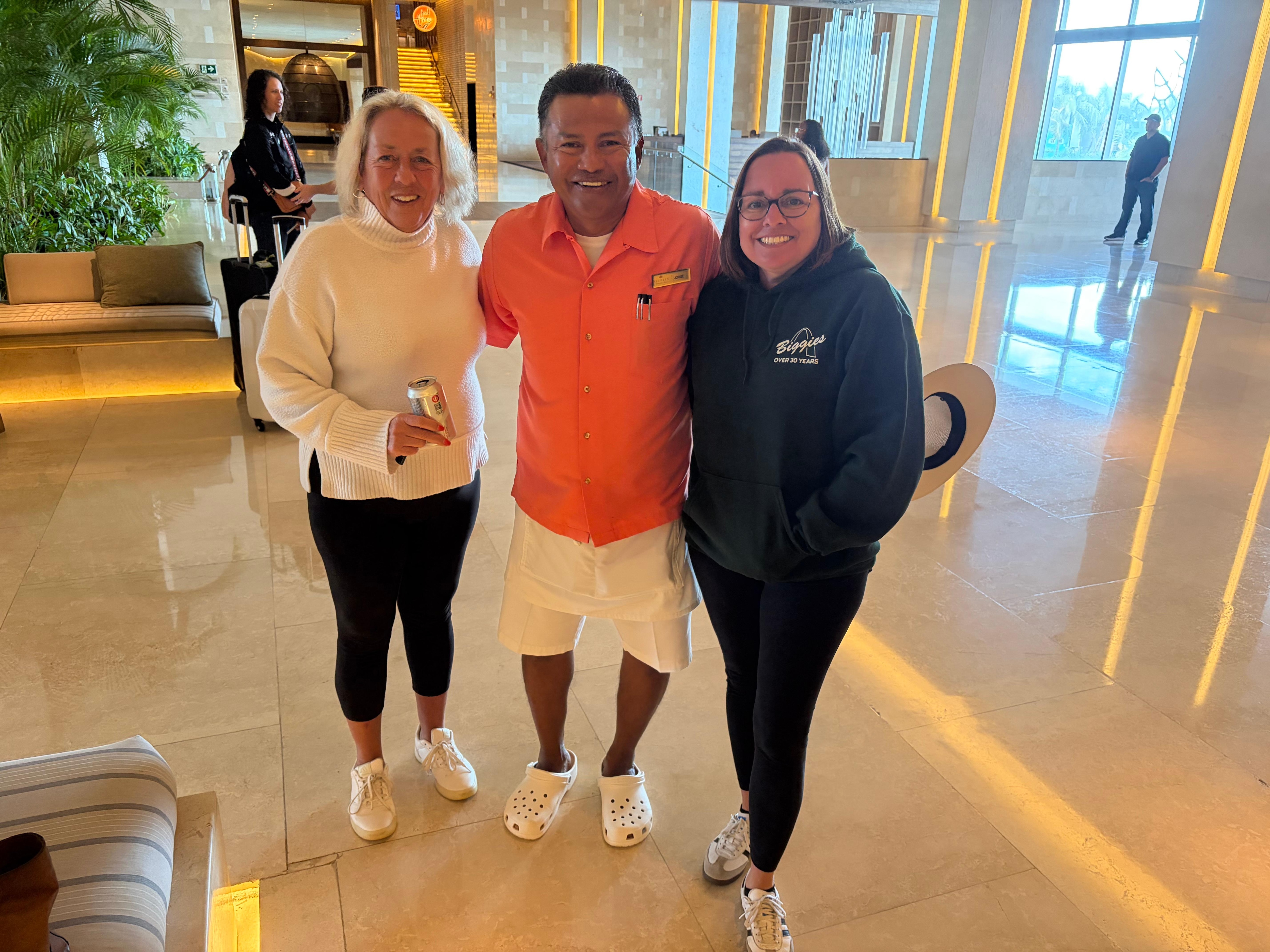 The location is great & the resort is modern and pretty. All the staff are friendly and very accommodating. The restaurant serving the breakfast buffet daily was wonderful. The only downsides were the extremely long waits for dinner at the steak grill restaurant and the Italian restaurant. The steak restaurant was enjoyable and food was good , but we did not care for the Italian restaurant. We waited well over an hr. Unless you get there before 6 for opening or dine late at 8:00 or after, you’re gonna have to wait. No reservations are taken. The pools were nice & pool service was good, but the availability of lounge chairs was iffy and crowded. However, the pool concierge was fantastic on finding chairs and setting them up for you. He was awesome! There are 3 pools close together but not huge and there is no swim up bar, which we would enjoy. Our room was very clean & had a slight ocean view but did not have a tub. Shower only, although it was large & water was hot. The last night we had a group of girls in the room beside us that came in laughing and loudly talking at 4:00 am and they were still making lots of noise at 6:00 am. It sounded like they were in our room. Their room was actually adjoined by a door to ours. That was not a good experience. I called The front desk finally, but it didn’t help. They were not considerate and kept laughing and yelling.