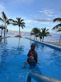 Yes, this property has an outdoor pool. Pool access is from 7:00 AM to 10:00 PM.