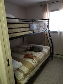Bunkbeds and a pull out not so comfortable or clea