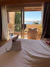 Super geschlafen sehr geräumige Familien Zimmer mit zwei Zimmer einem Kingsize Bett und einem Zimmer mit zwei Einzelbetten, zwei gemütlich sofastühle, tolles Badezimmer, 2 Balkone, Zimmer Service Mega toll, täglich super sauberes Zimmer mit tollen Figuren am Bett ein Highlight für die Kids