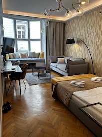 View all photos for Premium Studio, 1 King Bed with Sofa bed, Kitchenette, City View