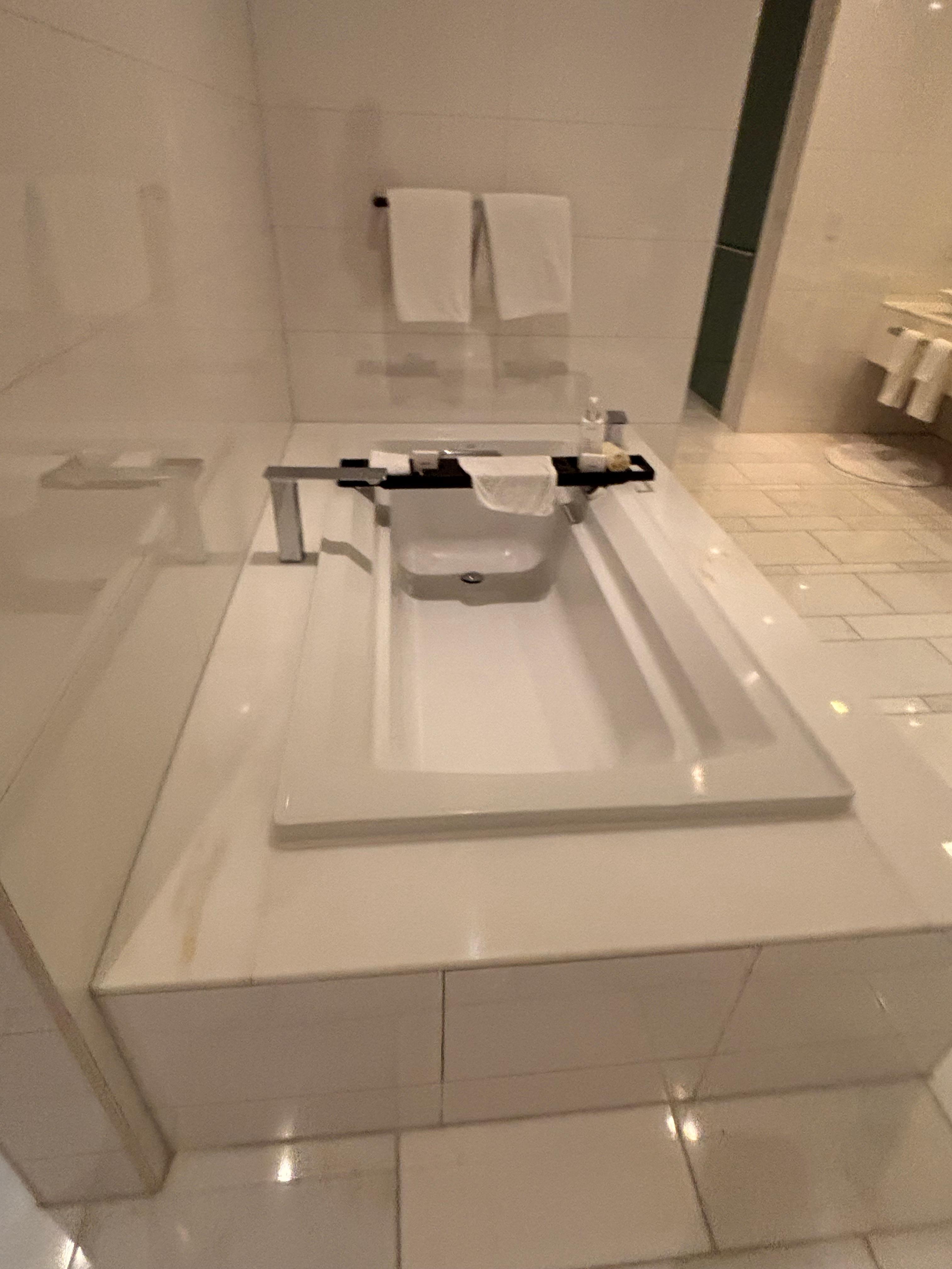 The room wasn’t clean. There were leftover bottles and cans in the refrigerator. Our bathroom amenities kit and tissue were empty when we arrived to our room and were not filled when housekeeping came the next day. Room service was delivered in to go boxes in a paper bag. Overall very disappointed in the room.