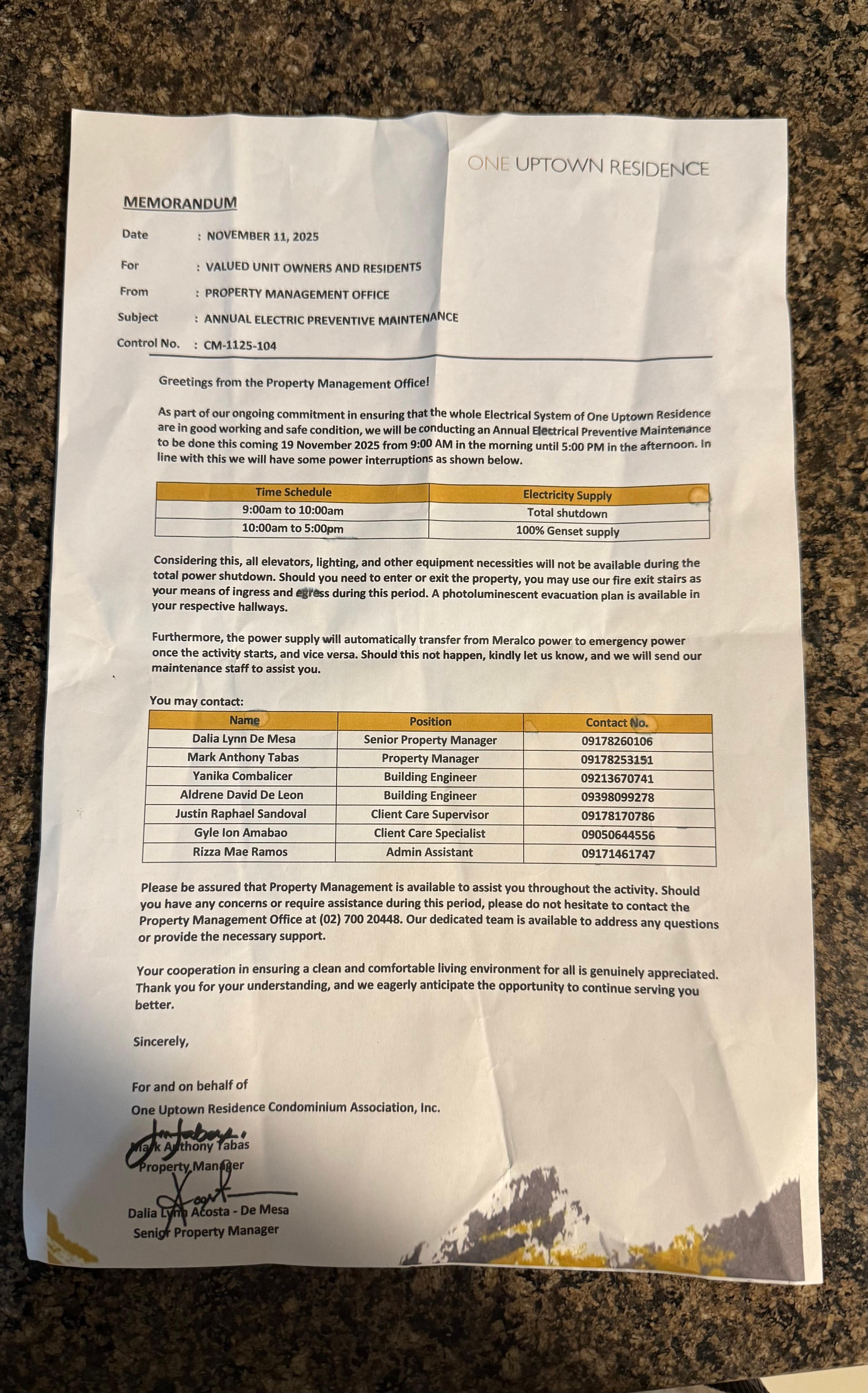 There was a scheduled electricity and elevator shutdown on 11/19, with notice sent to the property manager on 11/11. We were staying on the 21st floor, yet no one informed us in advance. No warning, no courtesy message, nothing. Had we known, we would have booked elsewhere.