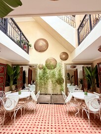 Riad Serenity offers travelers a tranquil escape in bustling Marrakech. Guests start their day with a continental breakfast before exploring the city or dining at one of two on-site restaurants. Each room includes WiFi for staying connected while enjoying the peaceful atmosphere.
