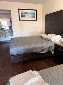 If I could give them zero stars I would. The best part of the stay was the restaurant next door. What I liked: it had a fridge and microwave. Beds were ok. Now onto the not so good stuff. The check in clerk wasn’t welcoming at all. She definitely didn’t want to be there. When we checked in, we were give a remote for the TV and one towel each. No face cloths or hand towels. One towel each that wasn’t that great. The TV didn’t work so the remote was useless. She didn’t care about that at all. There was mold on the top of the bathroom entrance. The room was barely clean and the air conditioning struggled with the hot air blowing under the door. I’d stay away from this place if you can. Pay a little extra and get a better experience.