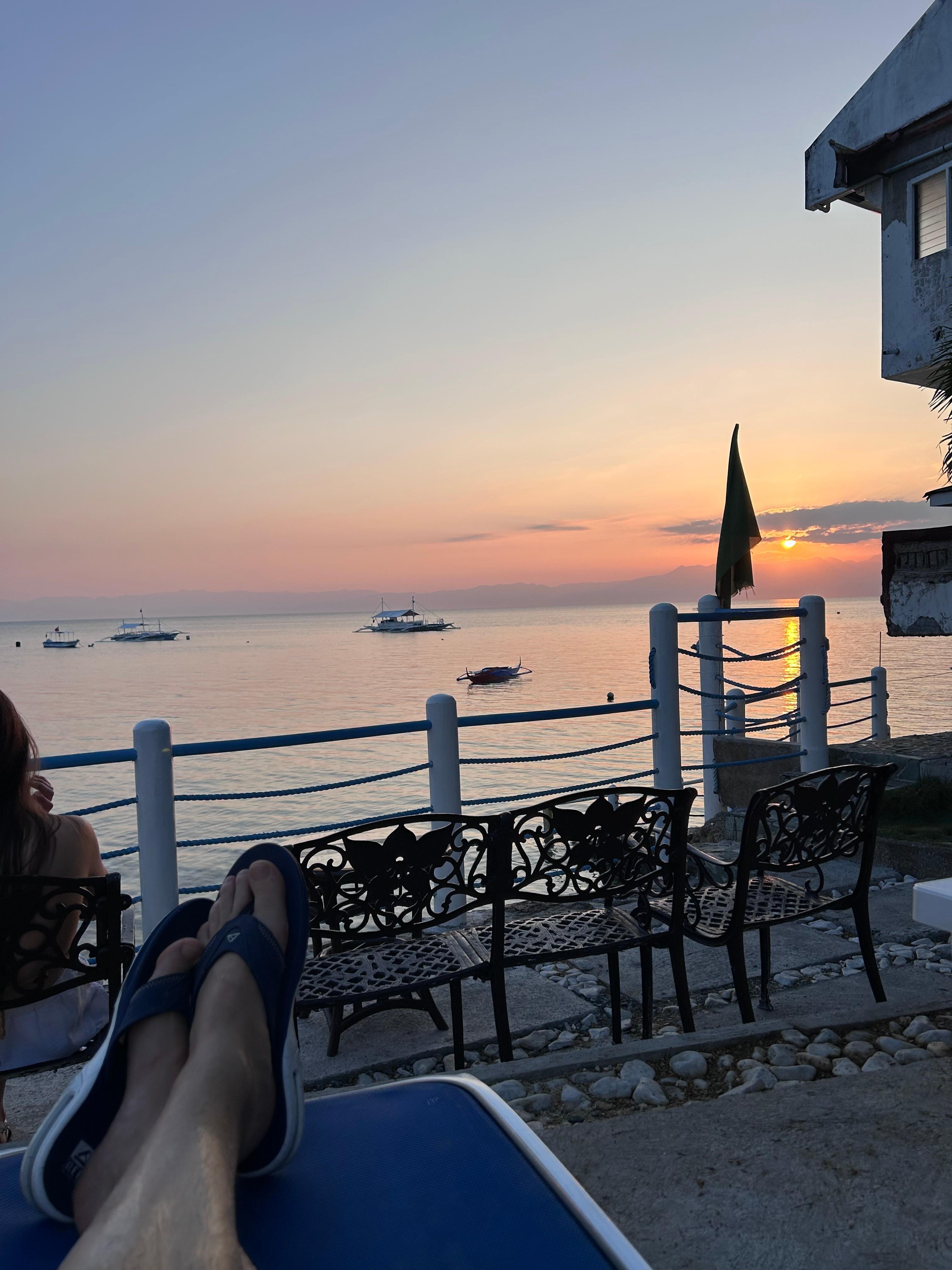 We thoroughly enjoyed our stay at Pescadores Suites. We enjoyed room which was right in the water. The pool was a nice perk. Breakfast was really nice - lots of variety. Staff are excellent - super friendly. Location is great - quiet part of Moalboal and it’s a short walk to town.