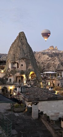Perched on a serene hilltop, this enchanting cave hotel offers panoramic views of Cappadocia's fairy chimneys and hot air balloons. Delight in a fresh breakfast at the owner's private farm, and unwind in spacious rooms with unique tufa rock decor.
