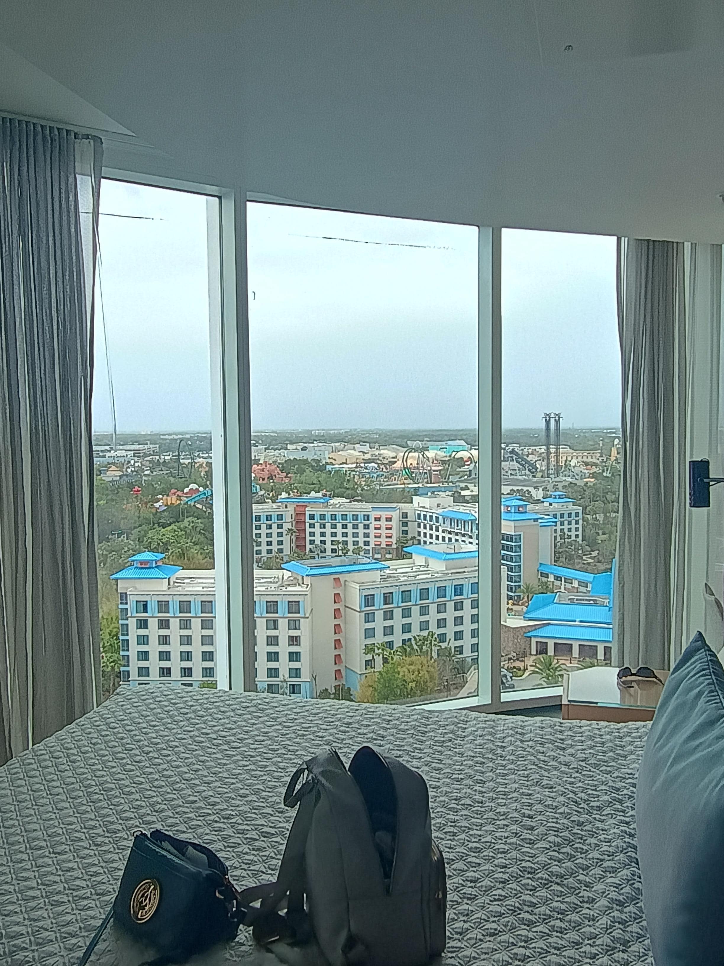 My kids and I loved this hotel! Happy with our stay and will be visiting again next time we head to Orlando. The hotel has a Starbucks, gift shop, rooftop bar with great views. My only complaint is that upon arrival, my kids and I headed to the rooftop bar to eat, and the glass with the Moscato I ordered looked like it had spit in it or something in it. I told the waitress and she got another from the bar tender. That was a little bit concerning. But the check-in went smooth and they got us in early, pool, the shuttle to Universal studios, the fire-grilled pizza on the main level, the fire pit by the pool, and the walk-up cafe made it so convenient to grab quick bites to eat, and we really Loved our stay overall so much!