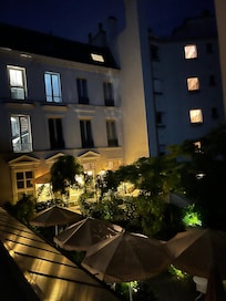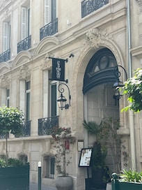 Le 5 Particulier captures Paris's essence with its tranquil garden and intimate bar. Guests connect using complimentary in-room WiFi, store luggage with ease, and receive insider tips from staff about exploring the nearby Arc de Triomphe.