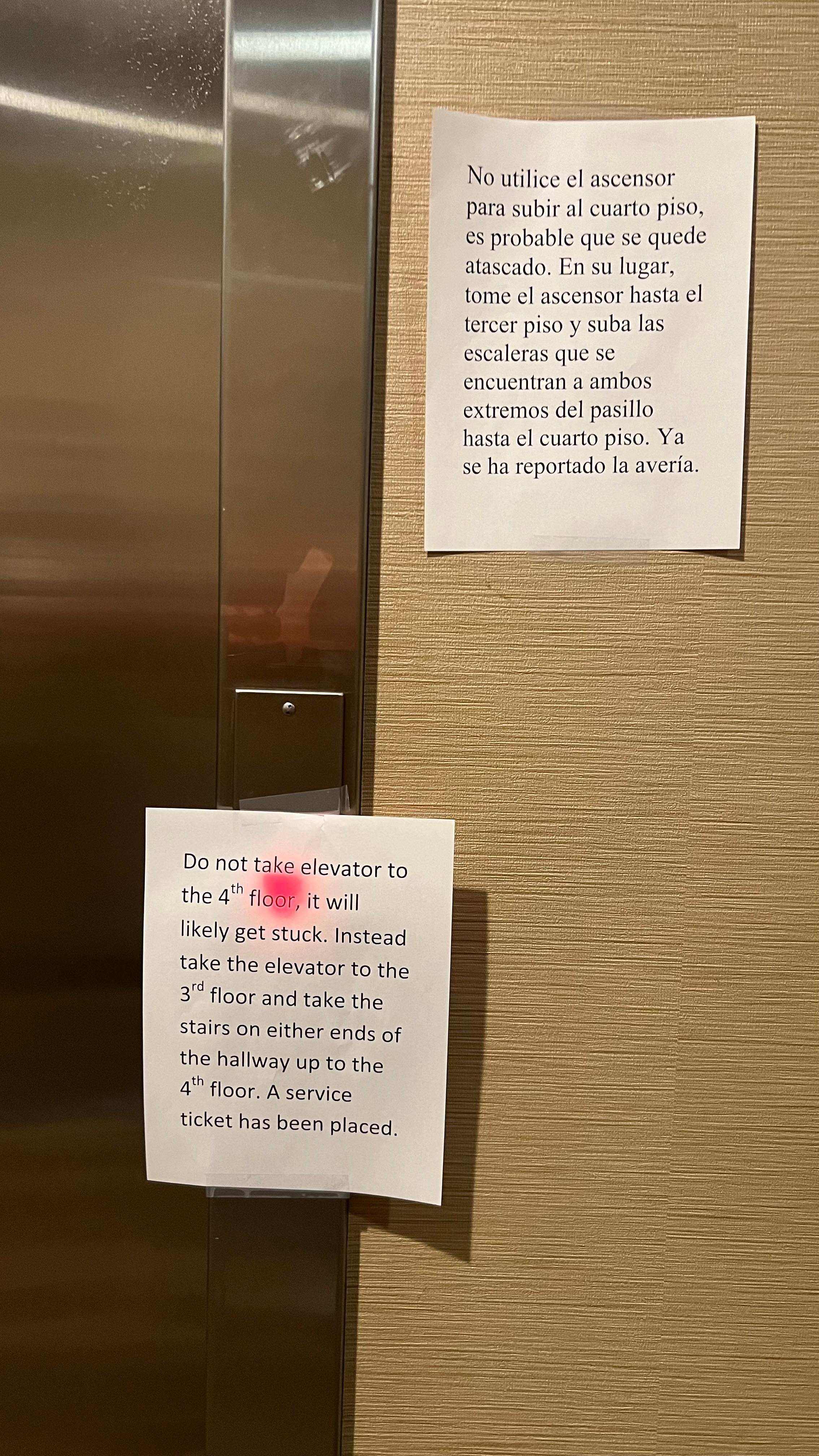 Only one elevator was working when we arrived. They were all broken when we left so we carried luggage down the stairs