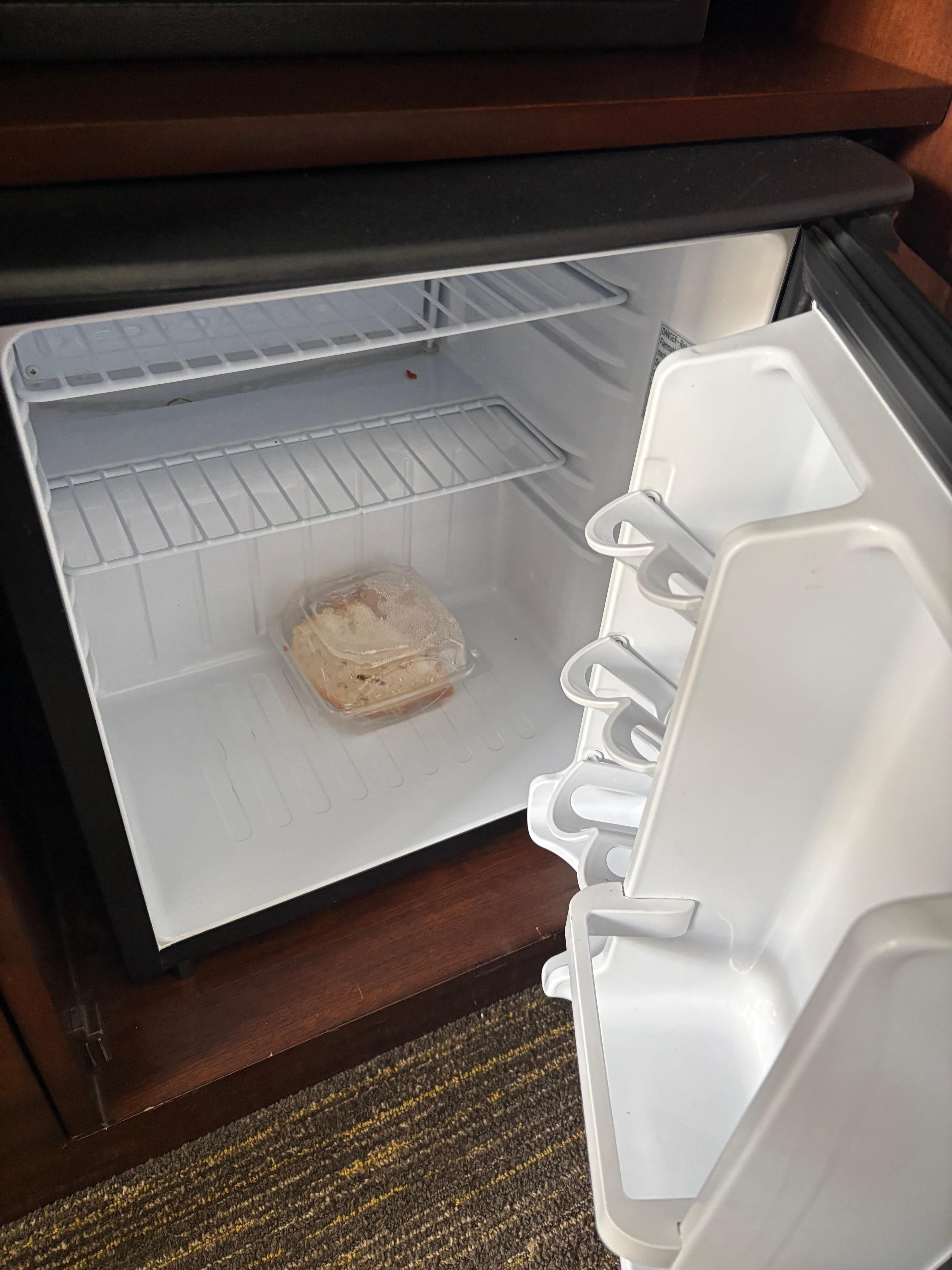Old sandwich in the fridge. Broken outlet, my kid almost electrocuted himself. Pretty basic otherwise.