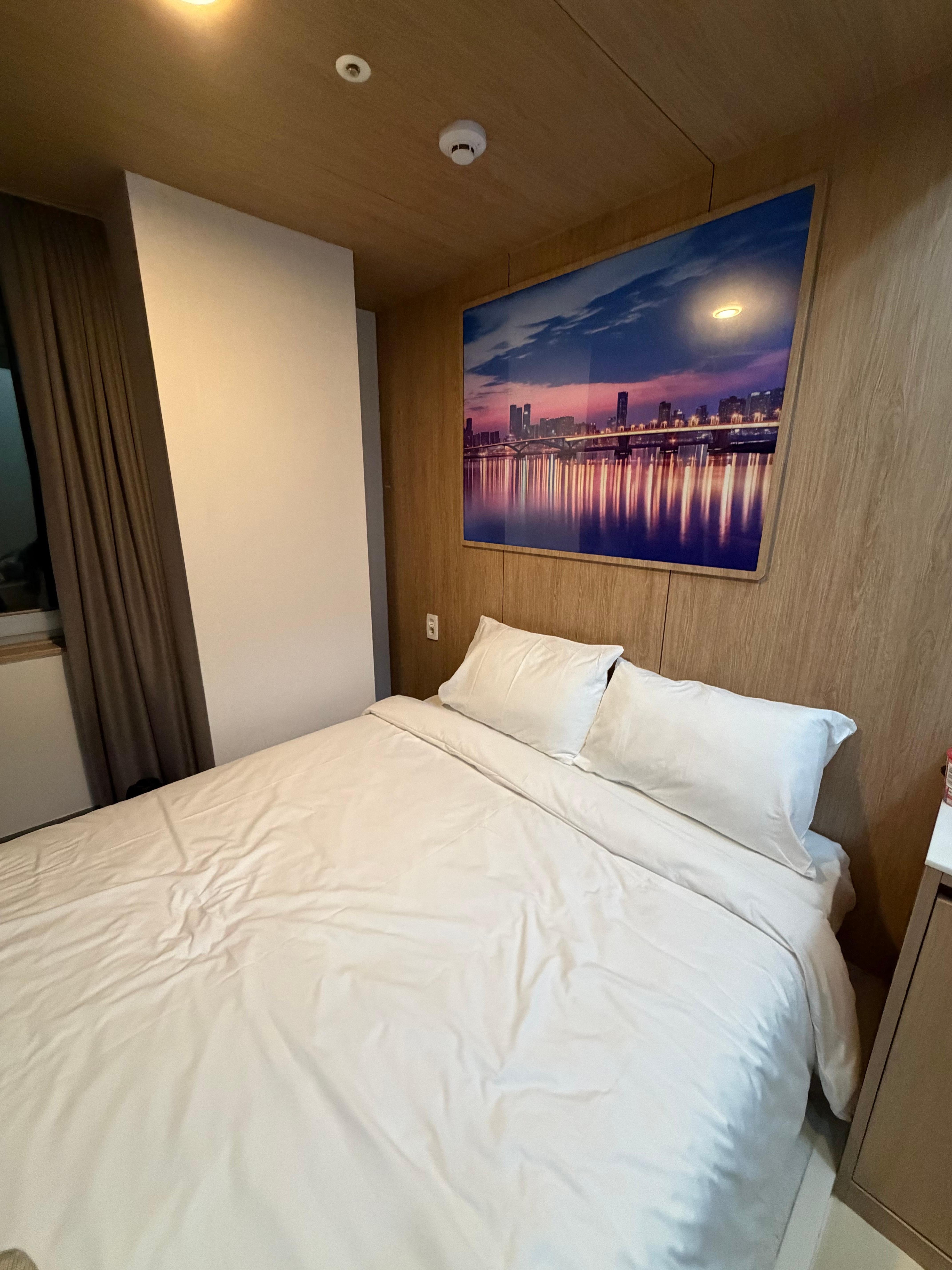 Room was clean and big enough for a solo traveler! I wish there was a smart TV. But the bathroom with heated seat and bidet was fantastic. Staff was very kind and helpful.