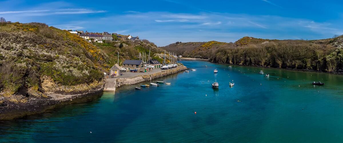 This colourful harbour village invites you to explore its coastal path with sweeping views of St Bride's Bay. Grab lunch at the harbour café after browsing local art galleries, or take a boat trip to spot seals around nearby Ramsey Island.