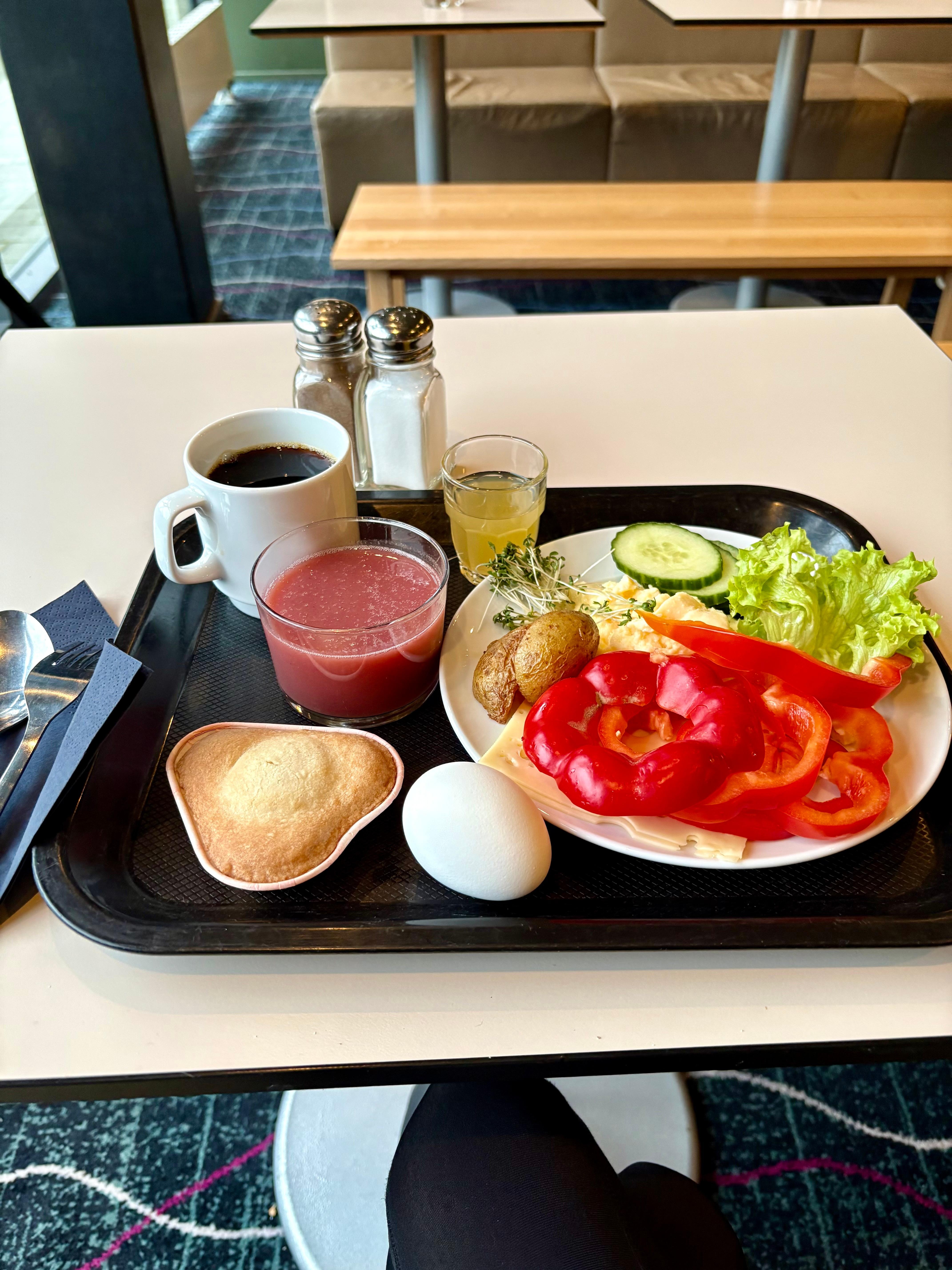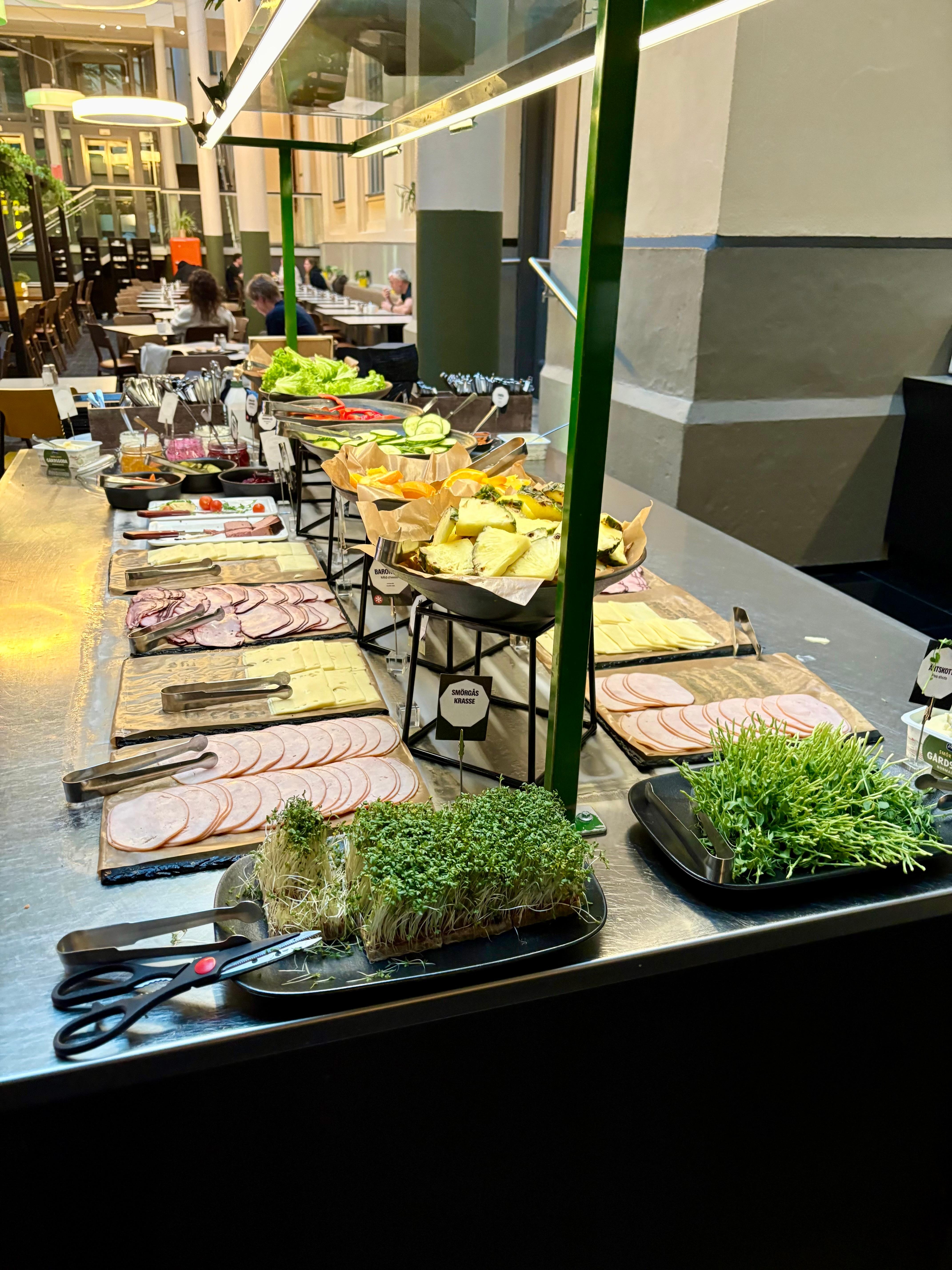 Setiap hari sarapan bungkus tersedia 4:00 hingga 13:00 dengan bayaran: SEK 115 seorang
