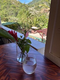 This retreat is an absolute paradise and oasis that makes the stresses of day to day life melt away! It felt both meditative and romantic. It is easily my favorite hotel I have ever stayed. I wish we had stayed longer. Every part of it was clean and in great condition. The staff were warm and welcoming. You can tell that every detail has been designed with much thought and care. The setting is gorgeous. You are surrounded by mountains, fresh air, waterfalls, and the sounds of birds and frogs. The pool is picturesque and peaceful with the backdrop of mountains in the background. The room was the perfect balance of simple yet luxurious. The shower and porch were amazing. The food also went above and beyond our expectations. The dinner was fresh with good-sized portions and beautiful presentation. It was our favorite meal of our whole trip. We especially loved the mofongo and the steak special. The breakfast was also divine! It included fresh/homemade yogurt, granola, fruit, croissants, jam, nut butter, and juice. I would recommend the waterfall hike and ceiba trail hike. Definitely follow the hotel’s driving instructions. We did not and the drive up was not for the faint of heart - it was basically all unpaved roads, hairpin turns, and potholes. We used the hotel’s instructions on the way back down the mountain and it was a breeze! I hope to return and take advantage of the yoga and spa services next time!