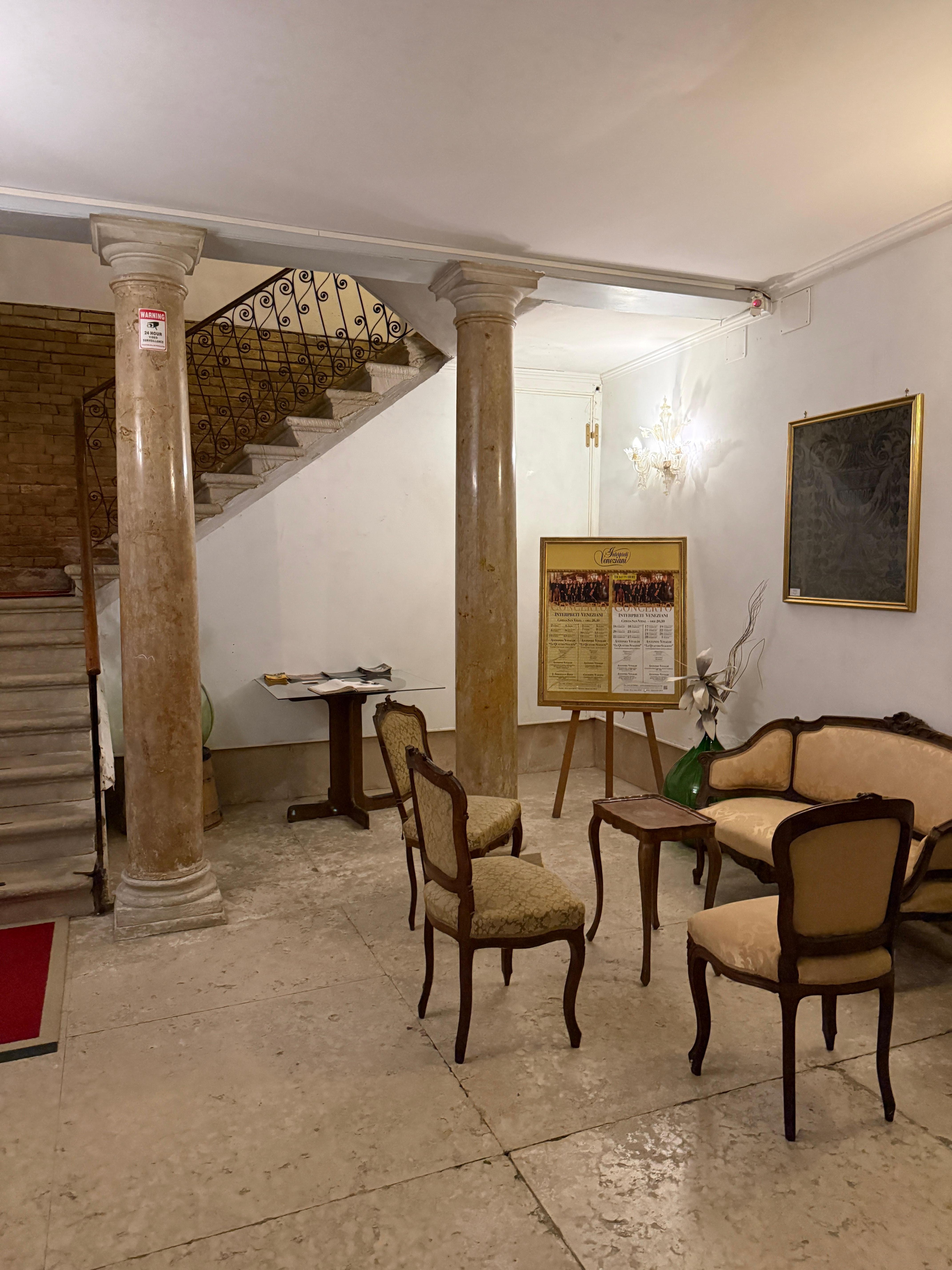 We had a wonderful stay with our two young children. This location was convenient to all the things we wanted to do in Venice. It’s a historic property and the rooms are equipped with everything you need (mini bar, comfortable beds and pillows, hairdryer, coffee, tea) our family room had a big window facing the courtyard so it got a little noisy Saturday night but nothing too bad. Our kids were able to sleep through it. I would definitely come back! The best part about this stay was the service. Everyone from the front desk ladies to the housekeeper were friendly and went above and beyond to make our stay comfortable and exceptional.
