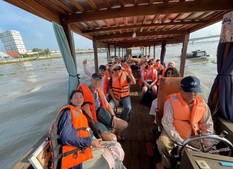 Begin your journey with a convenient pick-up from 243 De Tham Street or your hotel in central District 1. Travel to My Tho by air-conditioned tourist bus, enjoying scenic countryside views and lush green rice paddies along the way. Upon arrival, visit Vinh Trang Pagoda, the largest and most iconic Buddhist temple in the Mekong Delta.
