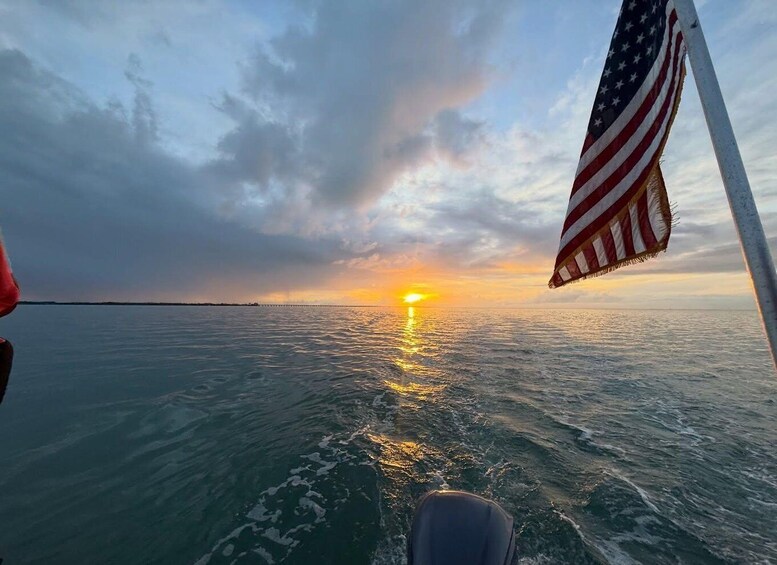 Cruise across sparkling tropical waters, feel the warm ocean breeze, and soak in panoramic views that capture the true spirit of the Keys. Keep an eye out for dolphins and other marine life while the horizon transforms into shades of pink, orange, and gold—perfect for unforgettable photos.
