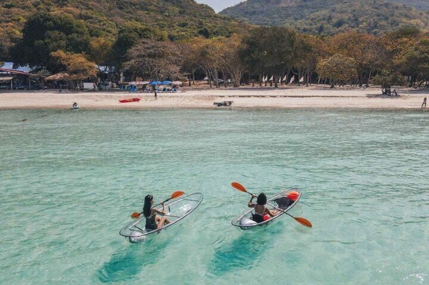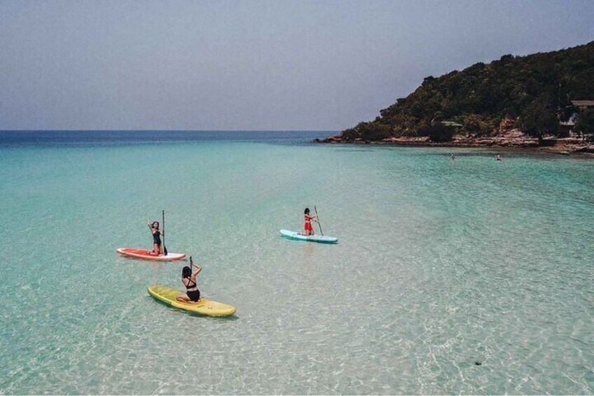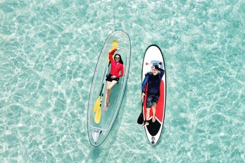 Transfer+Kayak+SUP+Lunch: Pickup/drop, SUP+clear kayak beach time, towel, 1 drink, insurance, lunch, drone media.