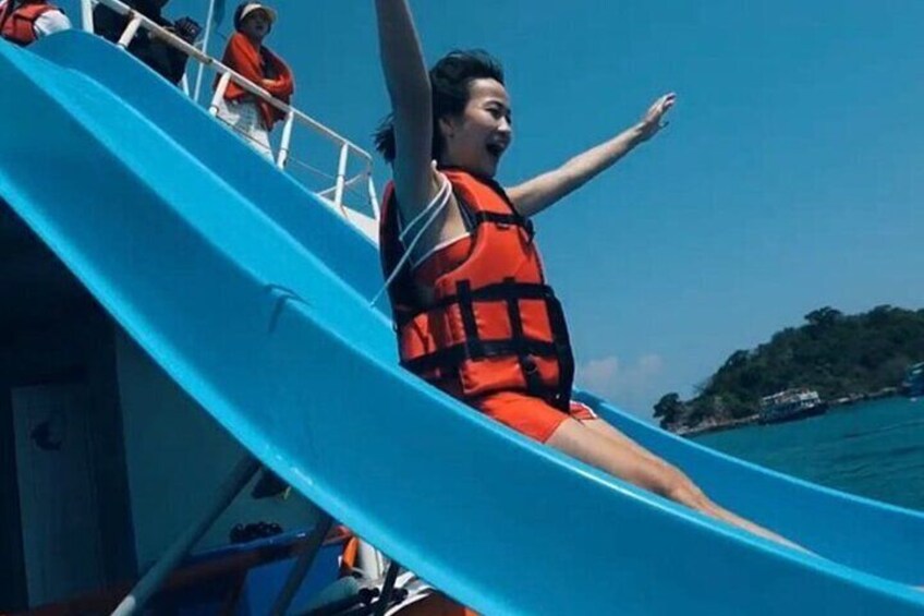 Slide + Snorkel + Lunch: Pickup/drop, snorkel + slide & water park, SUP+clear kayak, towel, 1 drink, insurance, lunch, drone media.