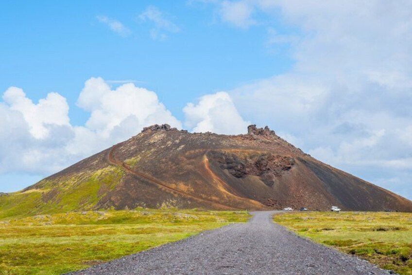 Pass through a moss-covered lava field rich in folklore and unique volcanic scenery.
