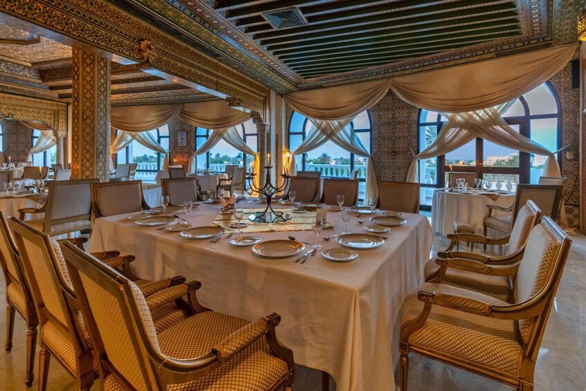 Upon arrival, be greeted with a delightful bouquet of flowers, setting the tone for an unforgettable experience. Step into the world of elegance as you embark on a guided tour of the magnificent Djerba Casino, accompanied by a refreshing welcome drink, perfectly complementing the luxurious ambiance.