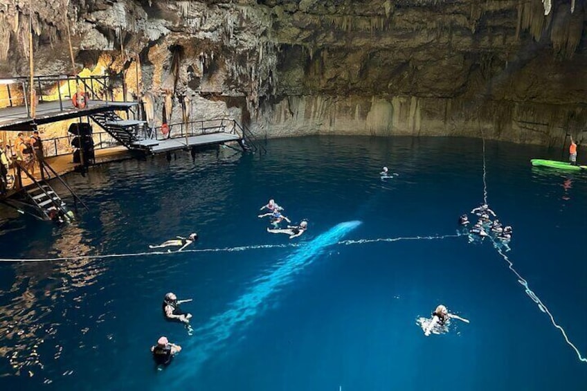 Discover one of the most impressive cenotes underground in Yucatan the Cenote Chukum where you can take a refreshing swim under hundreds of stalactites after visiting Chichen Itza ruins.