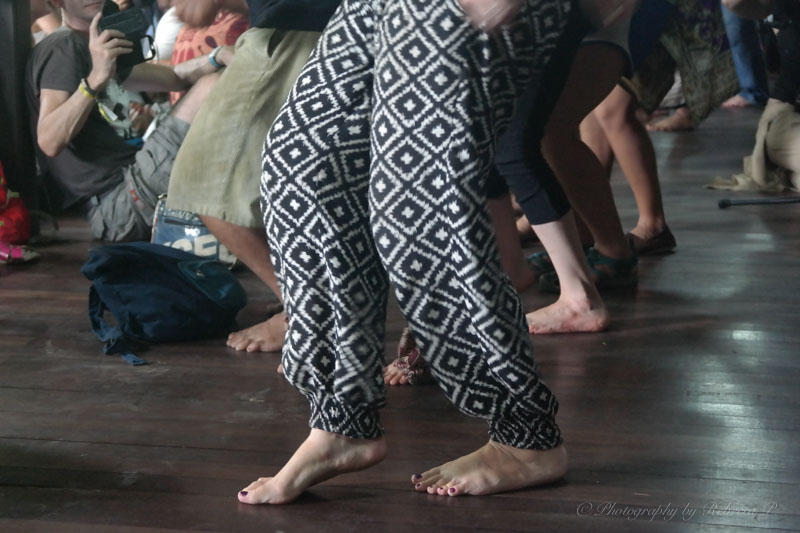 5pm: Then, to get in the mood for the party to come, at 5pm everyone is invited to join the massive drumcircle with 1Drum.org (Malaysia). So much spontaneous fun! The atmosphere now feels like a cross between a party in Brazil and an Indian bhangra party.