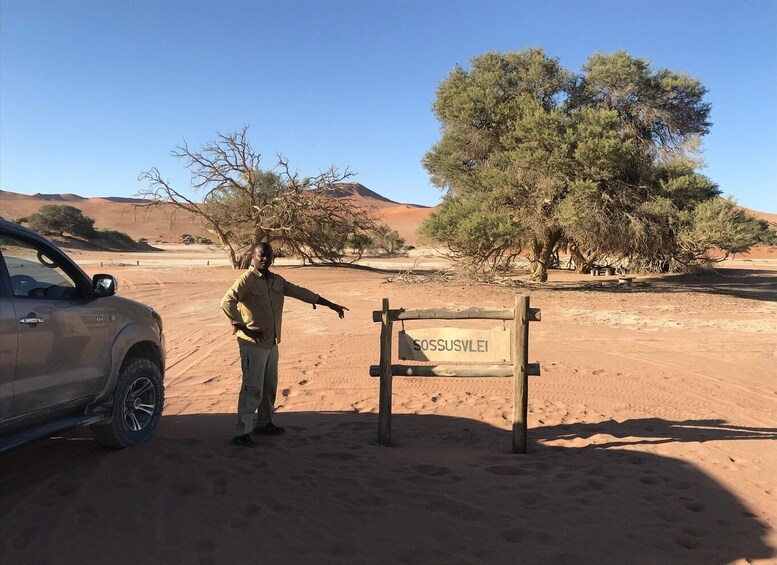 - Return transfers from/to Windhoek to the departure point of the Sossusvlei tour